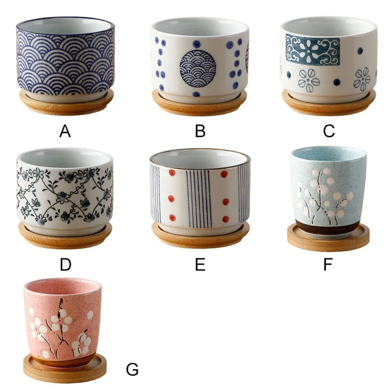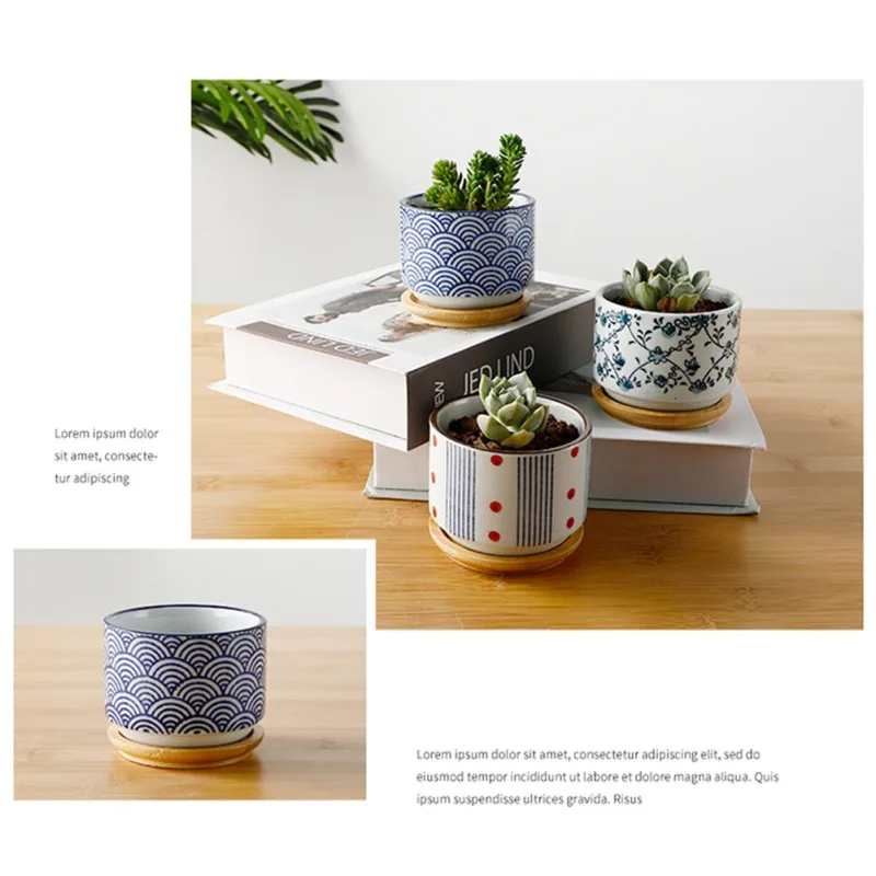 Китайский стиль керамический цветочный горшок для суккулентных растений с бамбуковой настольной подставкой декоративный маленький цветочный горшок для домашнего офиса