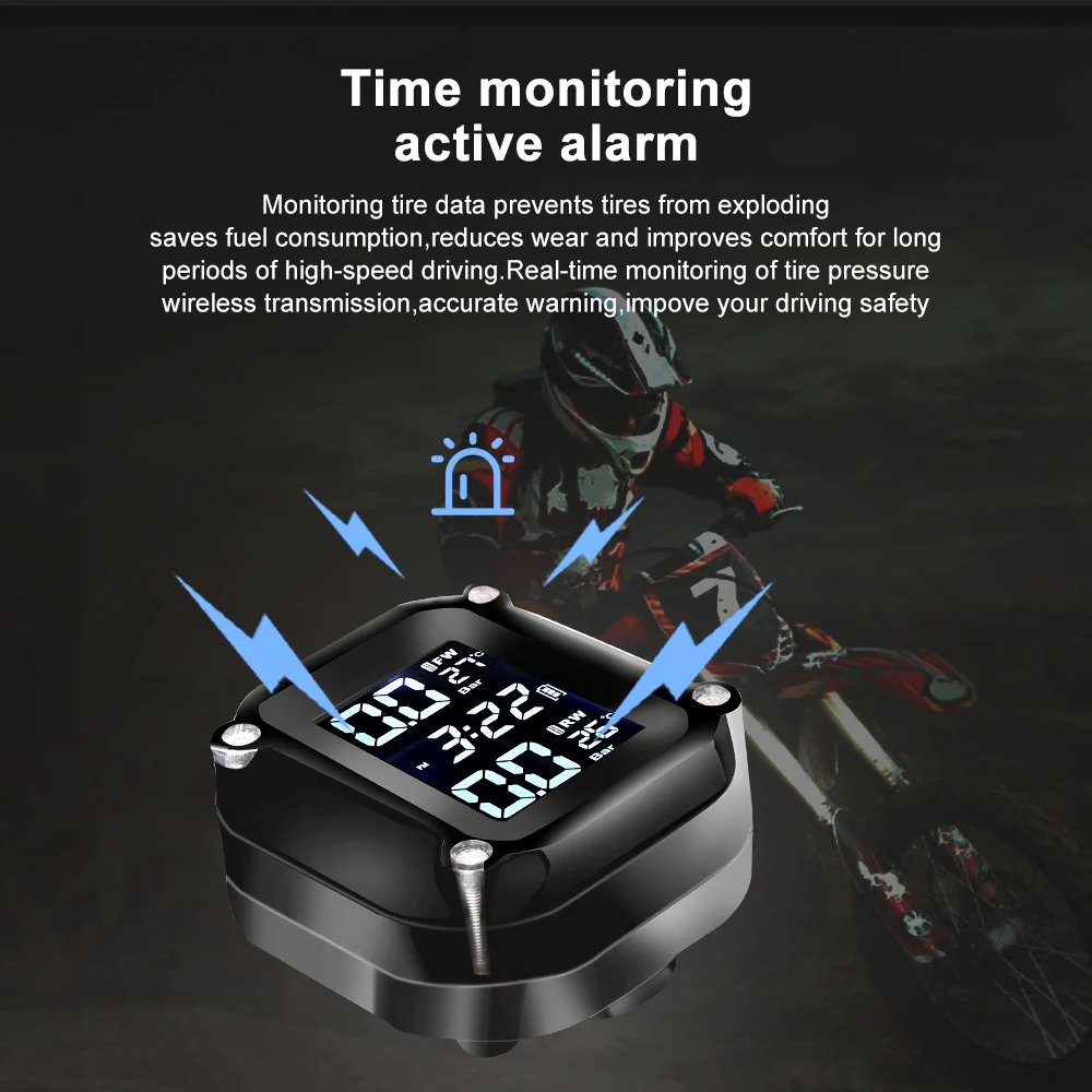 Мотоцикл TPMS система мониторинга давления в шинах двигатель шины ЖК-дисплей сигнализация с 2 внешними датчиками USB солнечная зарядка