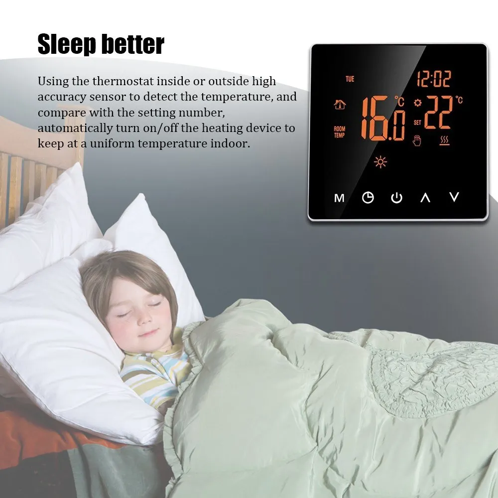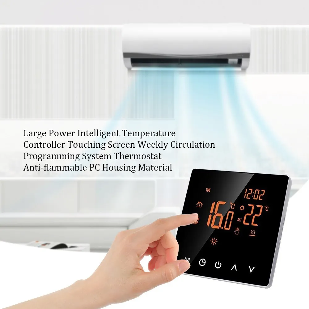 Еженедельный термостат с цифровым программированием является многофункциональным и использует термостат внутри или снаружи с высокоточным датчиком для определения температуры и сравнения с установочным номером, автоматическое включение/выключение нагревательного устройства для сохранения равномерной температуры в помещении. Особенности: Еженедельный термостат для цифрового программирования с сенсорным ЖК-экраном. Более тонкий, удобный дизайн и большой квадратный ЖК-экран обеспечивают хороший пользовательский опыт контроля температуры. Антивоспламеняющийся Материал корпуса ПК. Гуманизированный дизайн удобен в эксплуатации. Большой размер отверстия устойчив и прост в установке. С помощью термостата внутри или снаружи датчика высокой точности для определения температуры и сравнения с номером настройки, автоматически включается/выключается нагревательное устройство, чтобы держать при равномерной температуре внутри. Основная функция: настройка температуры в помещении, функция коррекции температуры, функция отключения памяти, еженедельная система программирования. Характеристики: Тип: с WIFI, без WIFI (опционально) Диапазон температур: 5 ℃ - 35 ℃(℃) Размер отверстия для установки: 60 мм/2,4 дюйма Способ установки: скрыть установку Рабочее напряжение: 220 В Выход сигнала: 0,3 мА Тип управления: температура Уровни защиты: IP20 Материал корпуса: огнестойкий Поликарбонат Мощность: менее 2 Вт Окружающий диапазон температур: 5,0 ℃-60,0 ℃ Точность контроля температуры: ± 1 ℃ Ошибка синхронизации: менее 1% Ток нагрузки: 10A Товар Размеры: 86*86 мм/3,4 * 3.4in Размер посылка: 100*95*65 мм/3,9*3,7*2,6 дюймов Посылка Вес: 320 г/11,3 унции Примечание: Допускается ошибка в 1–3 мм из-за измерений вручную Из-за разницы между различными мониторами изображение может не отражать фактический цвет изделия. Посылка: 1 * термостат