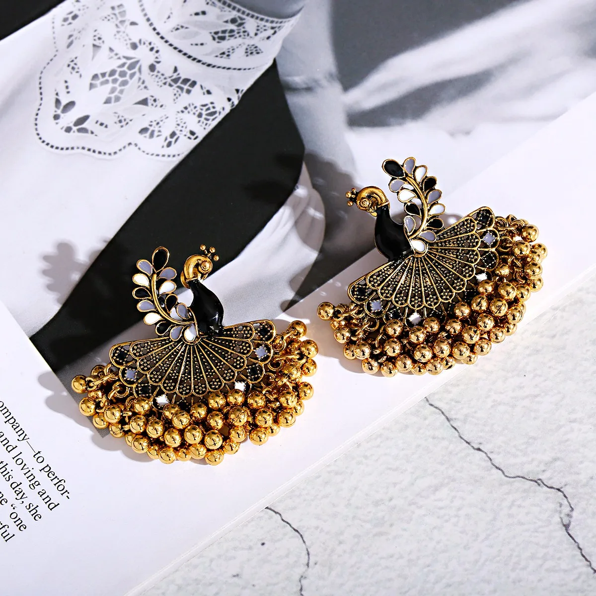 Винтажные окисленные серьги для женщин в стиле бохо с красным павлином капающим маслом и кисточками