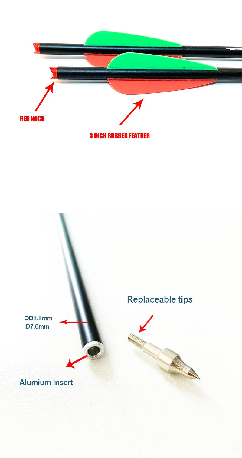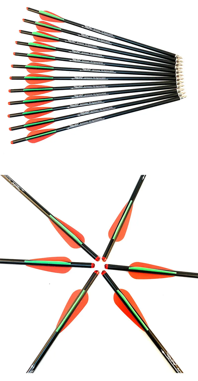 6 шт. позвоночника 400 16/18/20 дюймов Od8.8 Id 7,6 3 дюймов оранжевый, зеленый каучук перо углеродную стрелу на открытом воздухе Охота со стрелками
