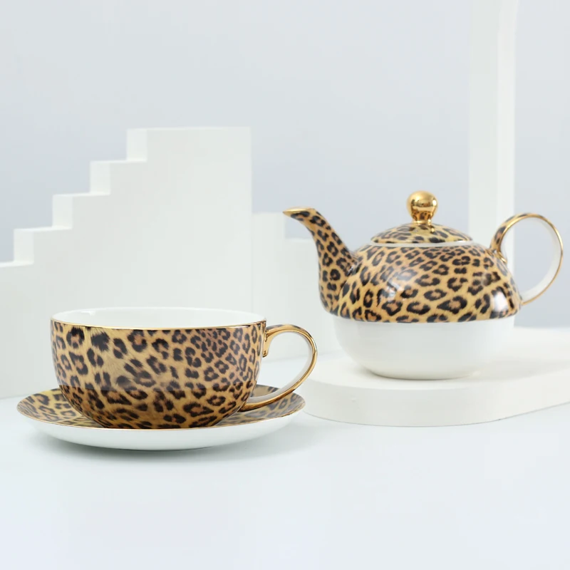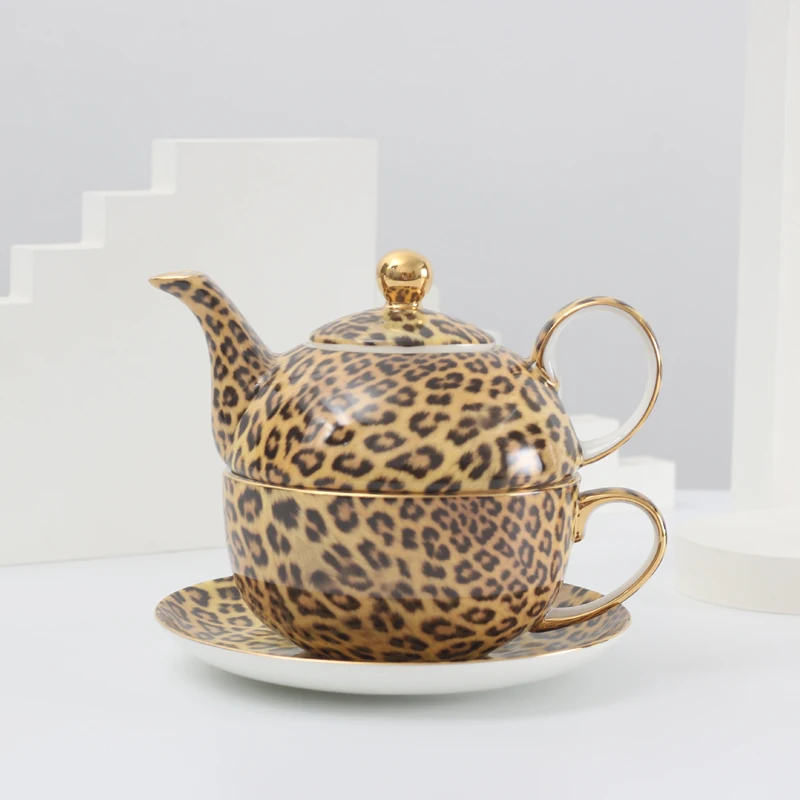 Чайник для одного костяного фарфора с леопардовыми узорами