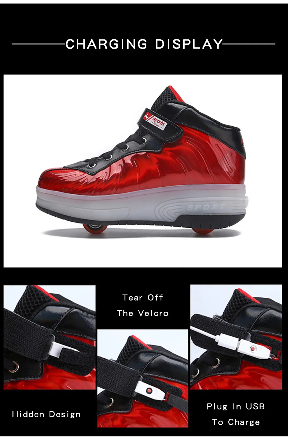 Модель: S5003 Категория: светодиодные модные украшения Пол: нейтральный Стиль: одно колесо, два колеса Цвет: розовый, красный, серебристый Китайский размер: 30-40 Верх: ПУ и кожа Внутри: сетка Материал стельки: ЭВА и ткань Подошва: ТПР Преобразование единиц измерения: 1 см = 0,39 дюйма Спецификация: пожалуйста, обратитесь к странице с подробной информацией Информация о размере только для справки, пожалуйста, заказывайте в соответствии с размером, который вы обычно носите.