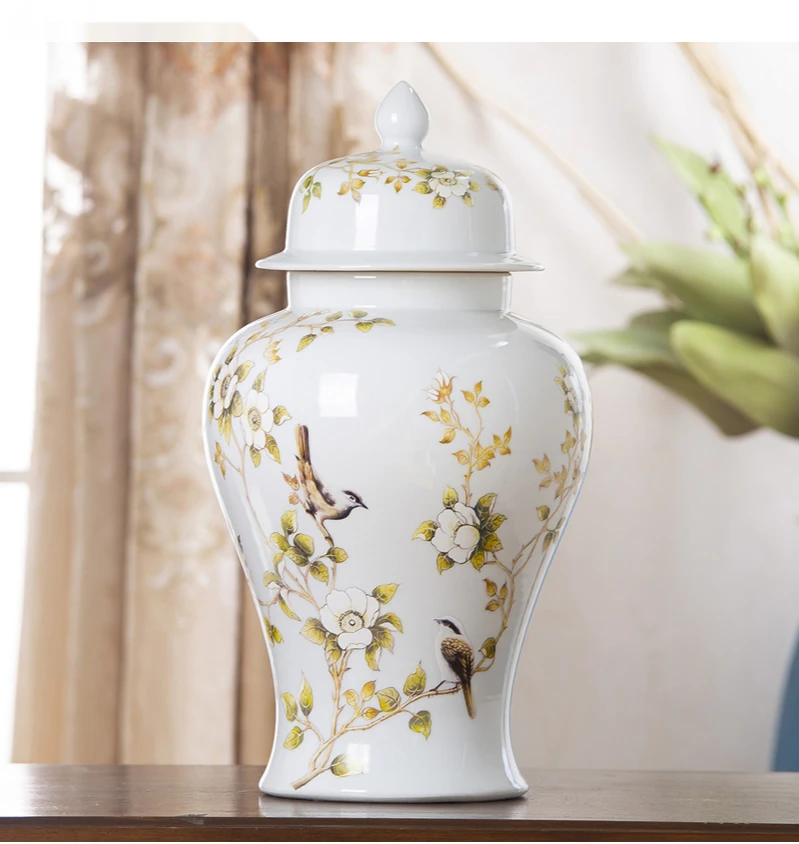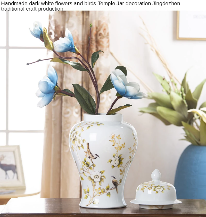 Традиционная китайская белая банка для имбиря с крышкой ваза с цветами декоративная банка для висков в форме шлема Средний 15 дюймов фарфоровые вазы для цветов