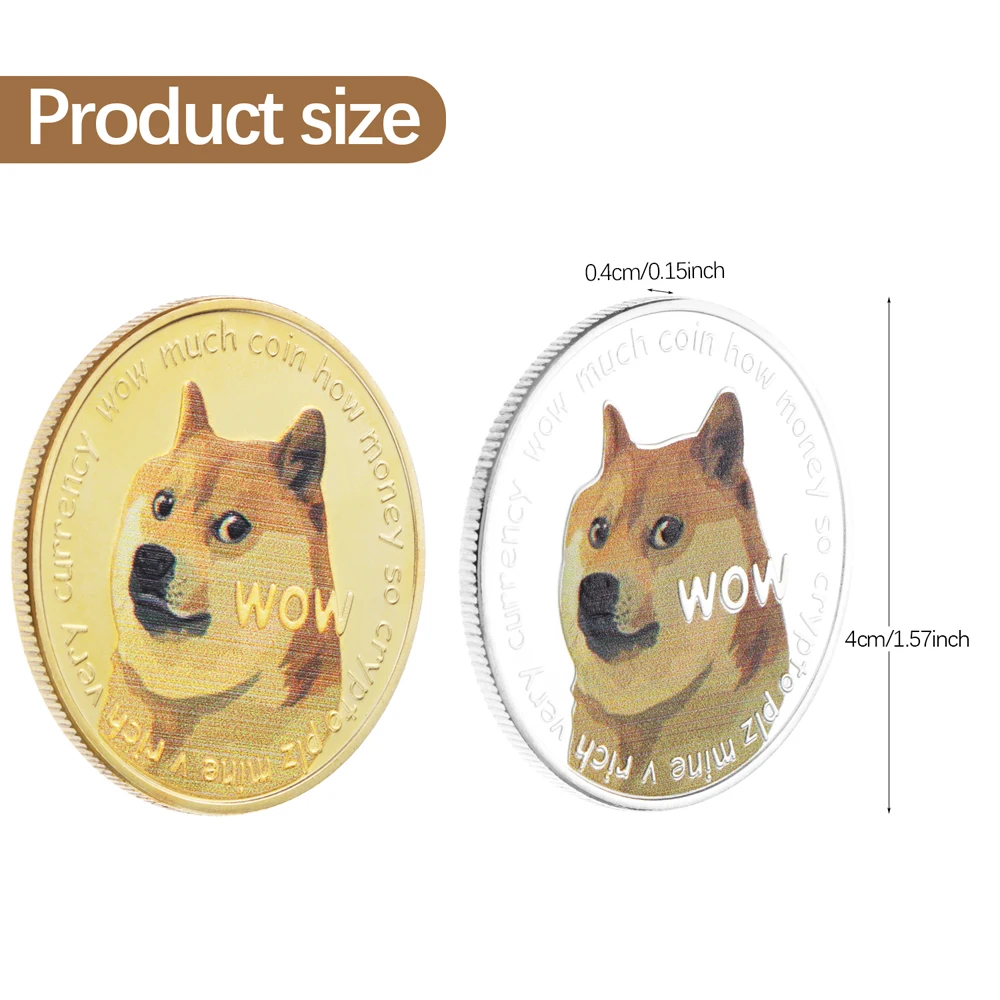 Диаметр = 40 мм Толщина = 3 мм Цвет: Золотой или серебряный Этот Dogecoin с гордостью демонстрирует революцию блокчейнов, которая успешно изменила вашу жизнь! Dogecoin золотые монеты добавят современную, элегантную и стильную атмосферу в коллекции каждого вдохновленного инвестора в майнинге криптовалют! Dogecoin может изгнать уникальный стиль на компьютерные столы, полки или гостиной/спальни украшения. Это лучший подарок для вашей любимой, мужа, отца, друга или коллеги.