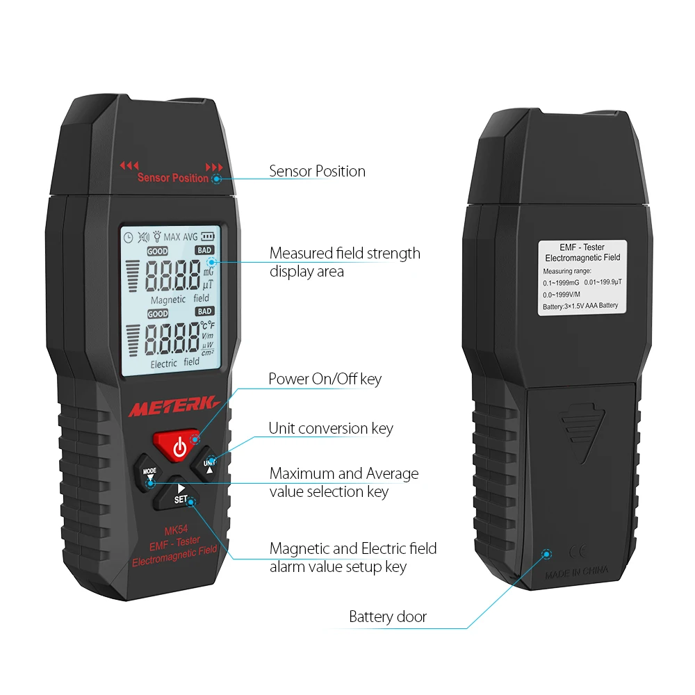 Один EMF метр с двумя видами применения-тестирование электрического поля и магнитного поля одновременно.