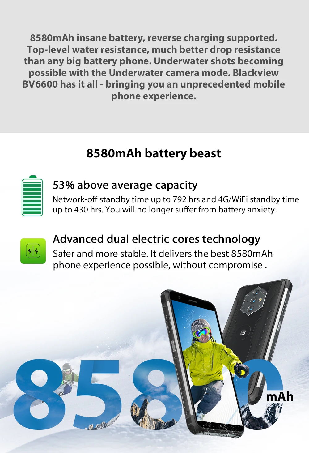 8580 мАч(Это теоретическое значение, может немного отличаться в некоторых условиях, мы не можем принять спор о емкости аккумулятора.)