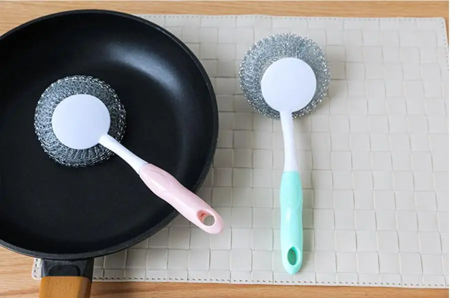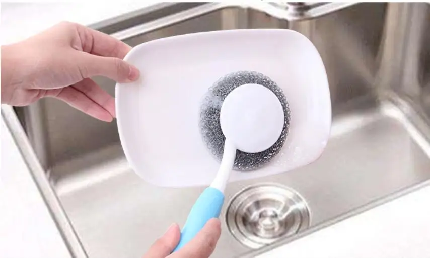 Кухонные губки из нержавеющей стали, набор с чистящей щеткой с рулем, скрубберы из нержавеющей стали