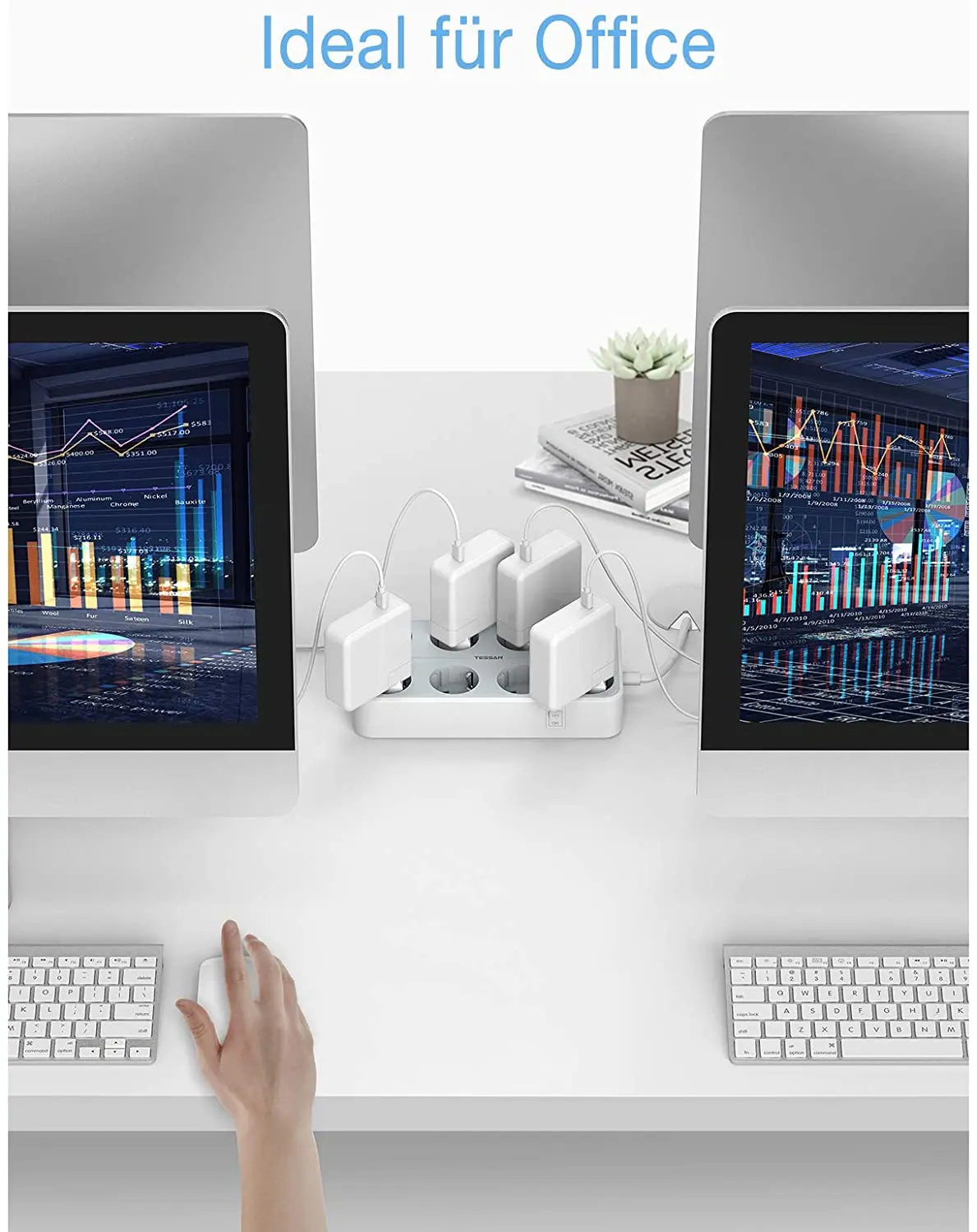 Умная зарядка через USB:Максимальная Совместимость с подключенными устройствами, устройствами Android, Apple series, Kindle u. Благодаря технологии Smart IC каждый порт может автоматически адаптироваться к вашим устройствам, а usb-порты 2.4A всегда быстро загружаются