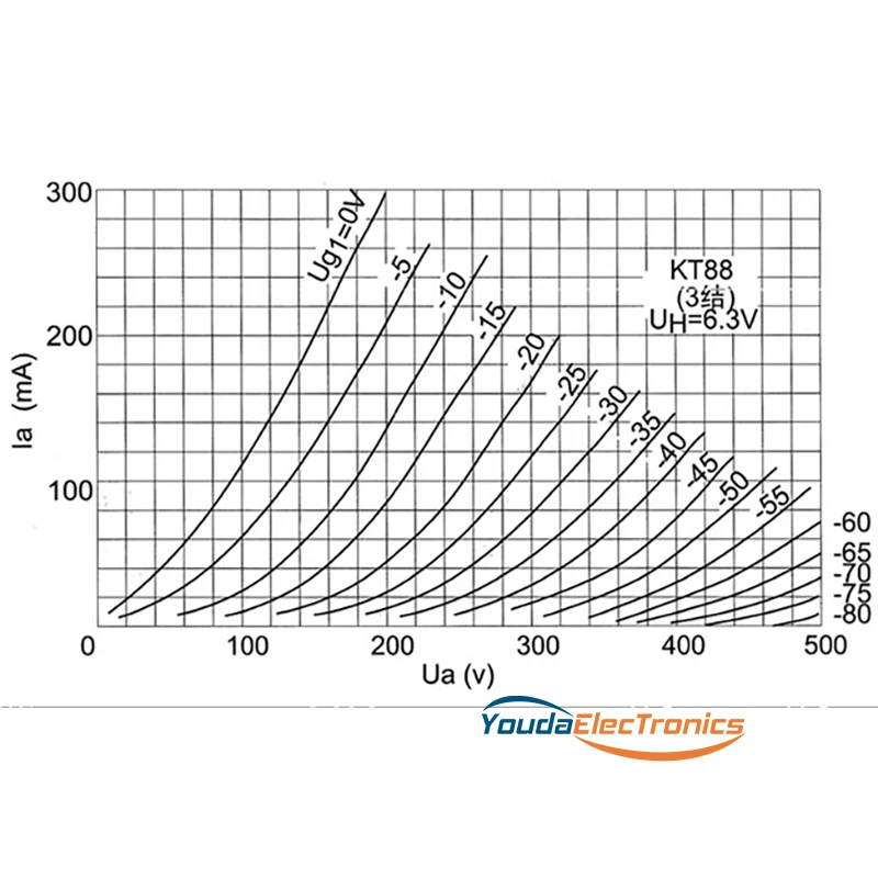 KT88-TII-это tetreode мощности луча, его анодная ограниченная Мощность рассеивания составляет 42 Вт. В аудиоусилителе мощность может быть 100 Вт, когда она используется в качестве push-pull class AB1 с двойными трубами, она также может использоваться в цепи электронного регулятора напряжения. KT88-TII аналогичен CV5220 и 6550, они могут быть заменены друг на друга.