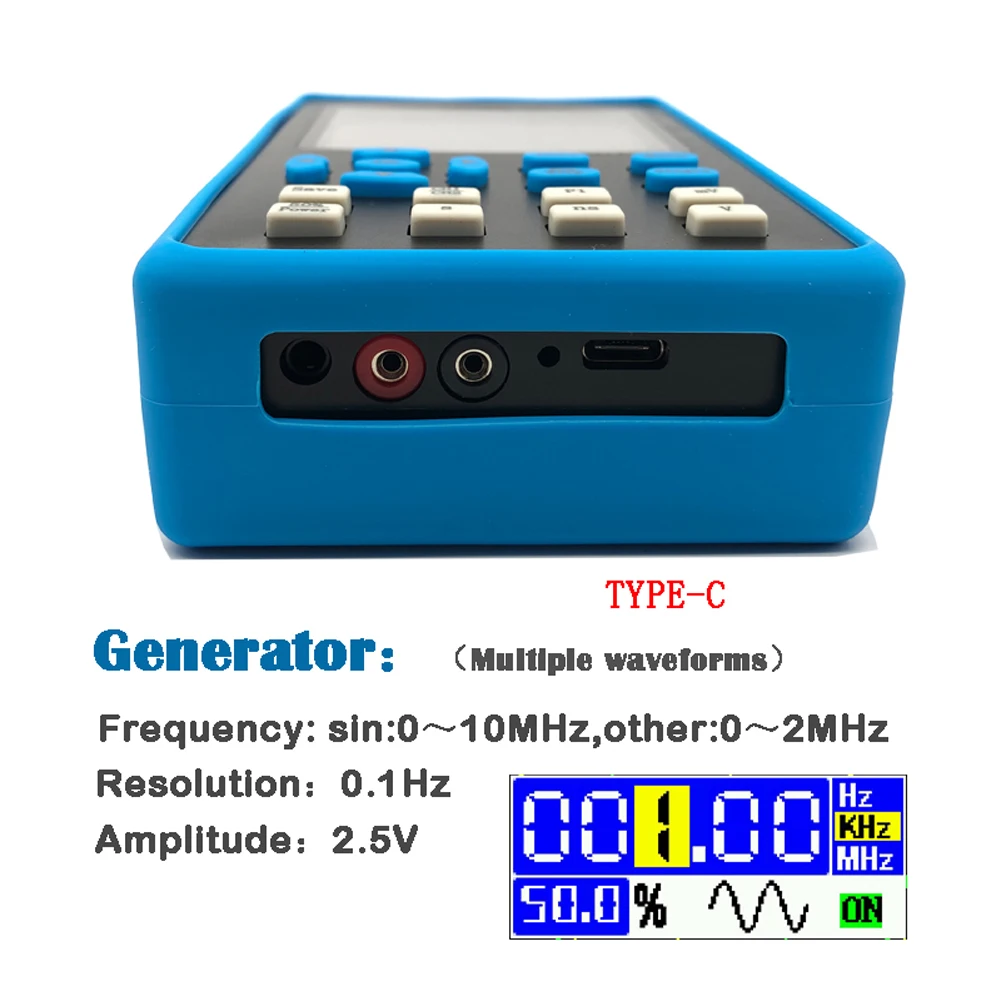 В нижней части осциллограф может выдавать различные формы волны 2,5 V амплитуда, таких как синусоидальной волны, квадратной формы волны, трапециевидного фасона-gle волны, средней длины волны, singh волны, среди которых Диапазоны регулировки частоты синусоидальных волн 0 ~ 10 МГц, Частотные диапазоны других сигналов 0 ~ 2 МГц, И точность определения его местонахождения составляет до 0,1 Гц. Генераторы сигналов широко используются, такие как квадратные волны для калибровки нового зонда, управляющая трубка MOS и т. д., синусоидальные волны используется для тестирования звуковых искажений и т. д.