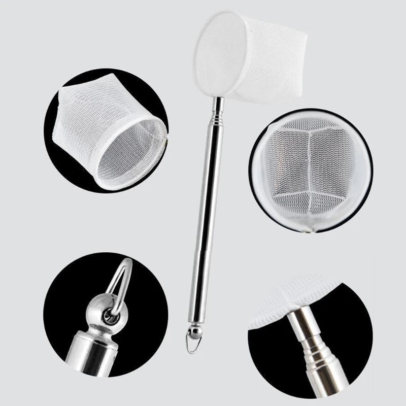 DescriptionAquarium Retractable 3D Stainless Steel Fishnet Pocket Shrimp Catching Fish Tank Cleaning Net Round / Square Shape Optional Gadgets Accessories