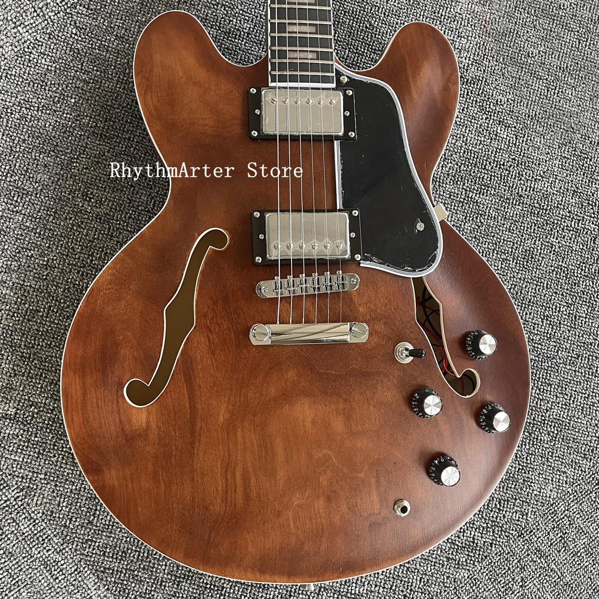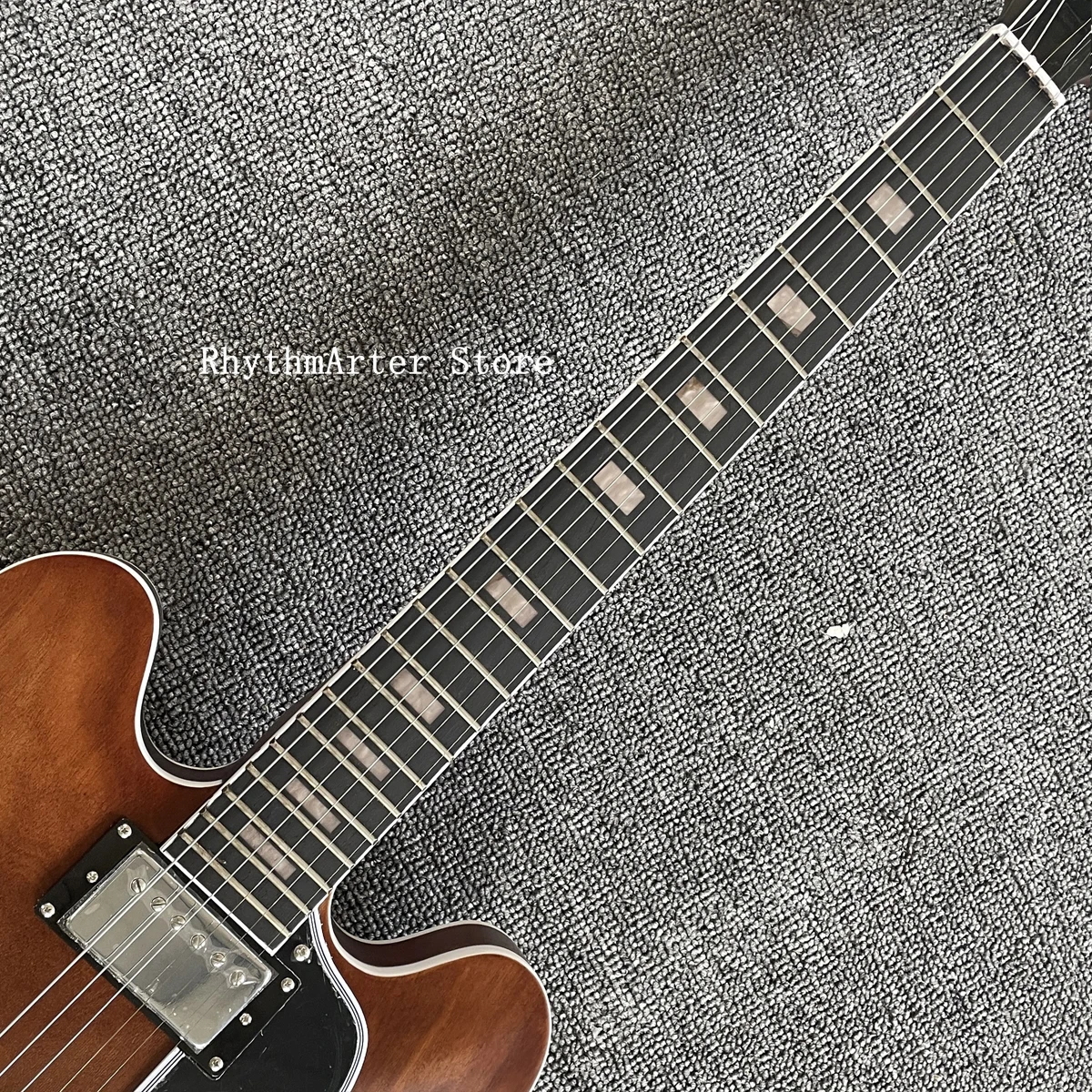 Высококачественная джазовая гитара, коричневая оригинальная деревянная гитара 335, красное дерево с двумя отверстиями и полым корпусом, гриф из палисандра, Хромовая фурнитура из сплава, бесплатная доставка