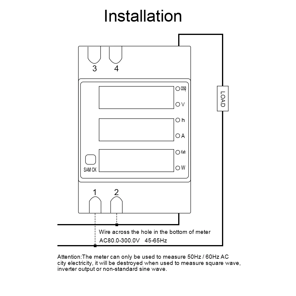 Счетчик может использоваться только для измерения электричества в городе переменного тока 50 Гц/60 Гц, он будет уничтожен при использовании для измерения квадратной волны, выхода инвертора или коррекции синусоидальной волны