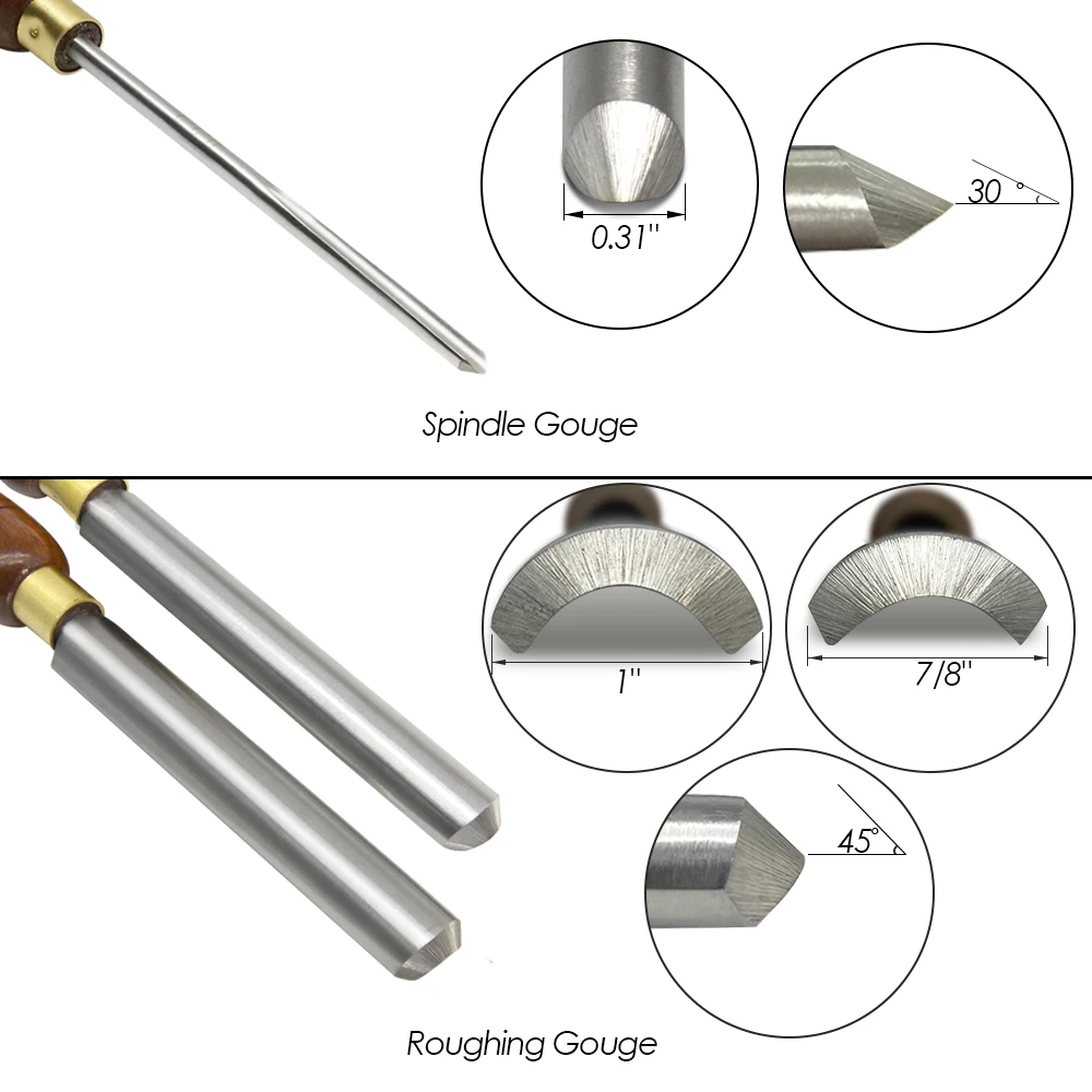 -Черновая выгула используется, чтобы повернуть грубую древесину в круг. Профиль и форма на выемке подходят для снятия древесины с шпинделя. Обычно это первый инструмент, который вы используете для проекта.