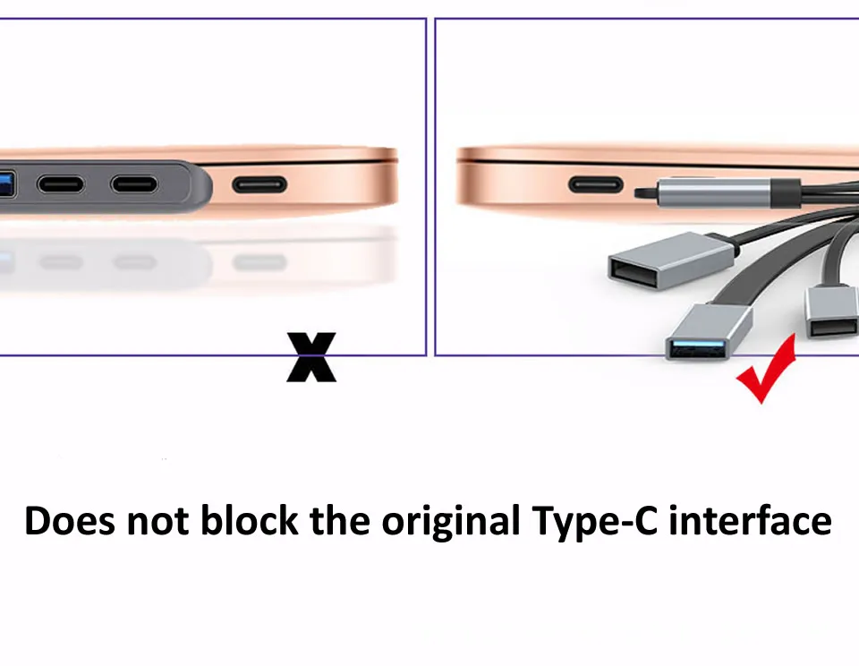 Дополнительный порт s: превратите один usb-c порт в 1 USB 3.0 порт и 2 USB 2.0 порт s.