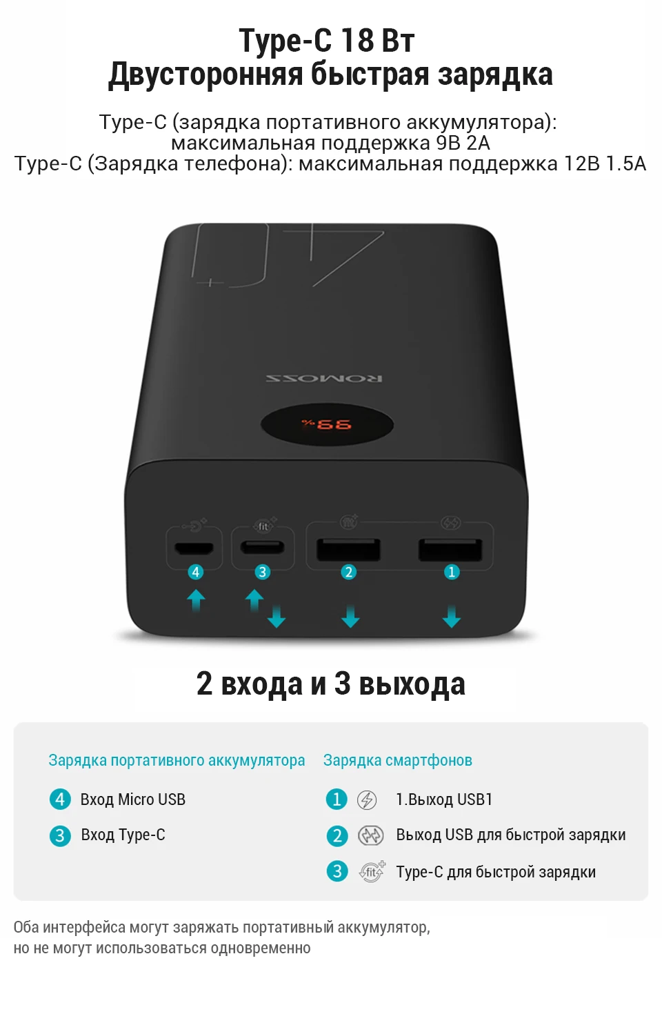 ROMOSS Zeus 40000 мАч Внешний аккумулятор, 18 Вт PD QC 3,0 Двусторонняя быстрая зарядка, Внешнее зарядное устройство Type-C для iPhone Xiaomi Huawei Samsung