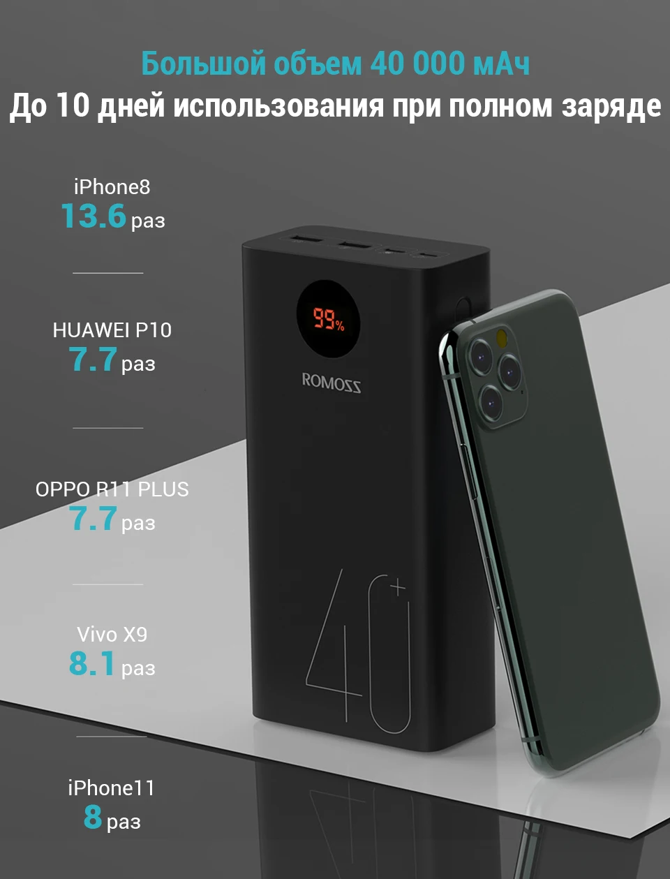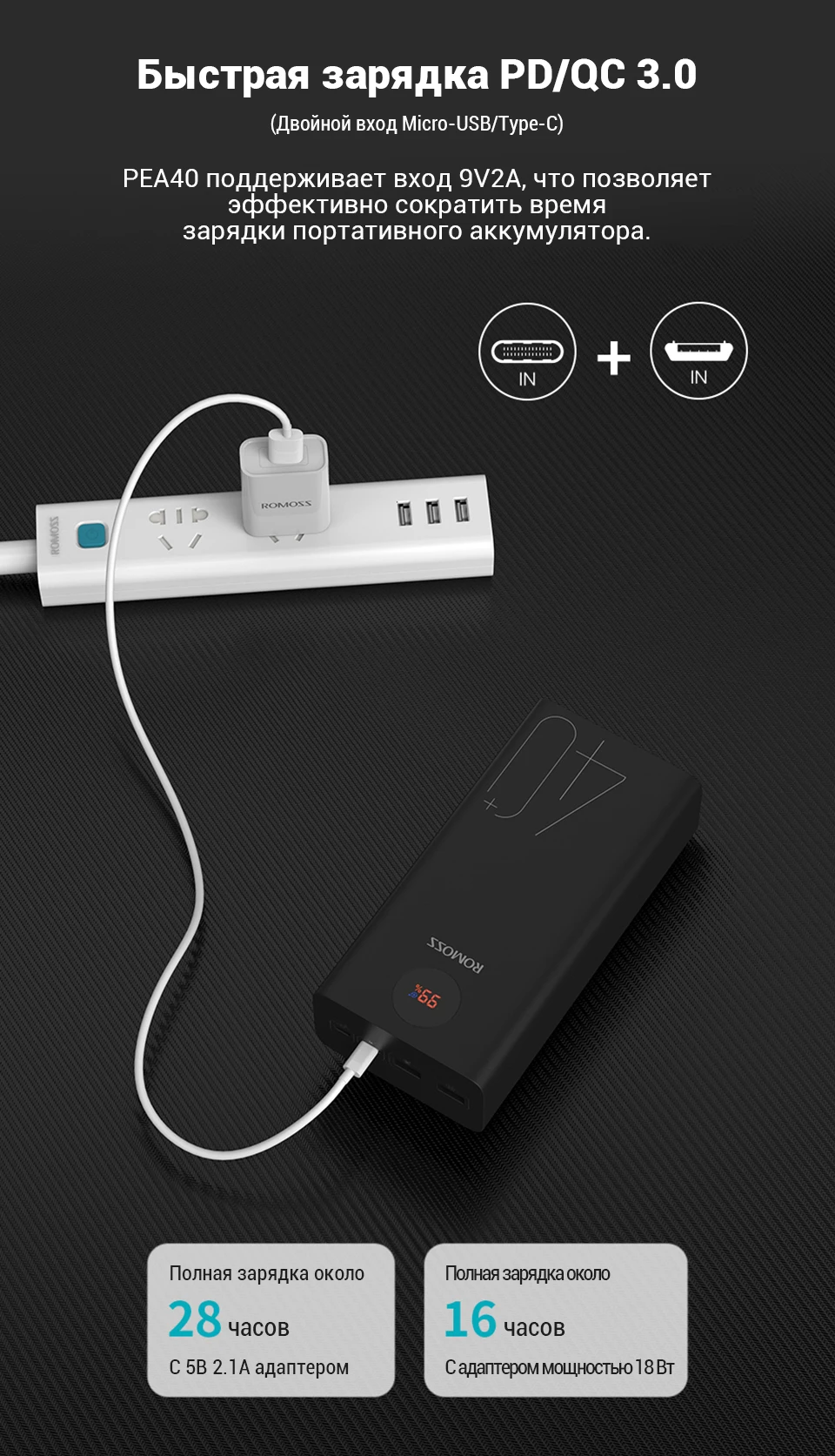 1 x ROMOSS 40000mAh банк питания с розничной коробкой