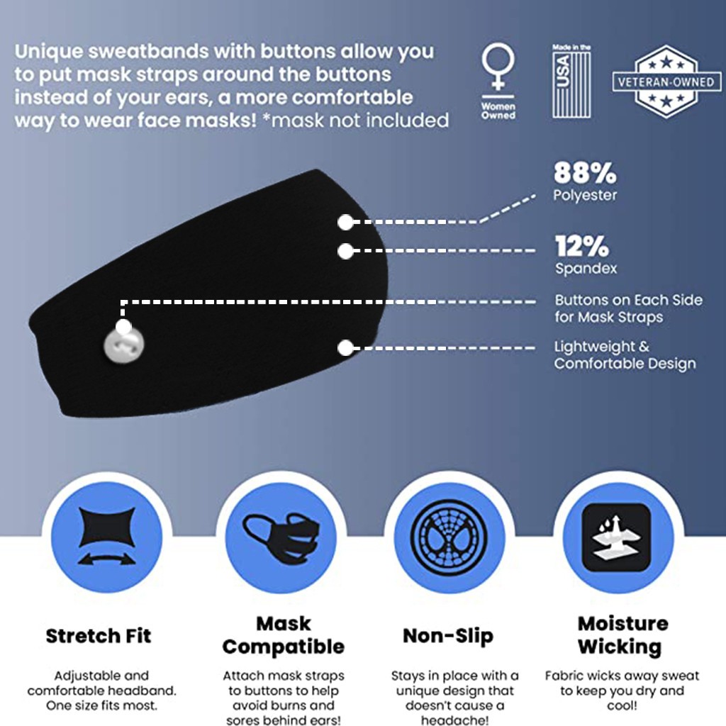6. Повязка на голову на пуговице для медсестер, докторов и всех, кто носит маску, защищает уши этой повязкой на голову