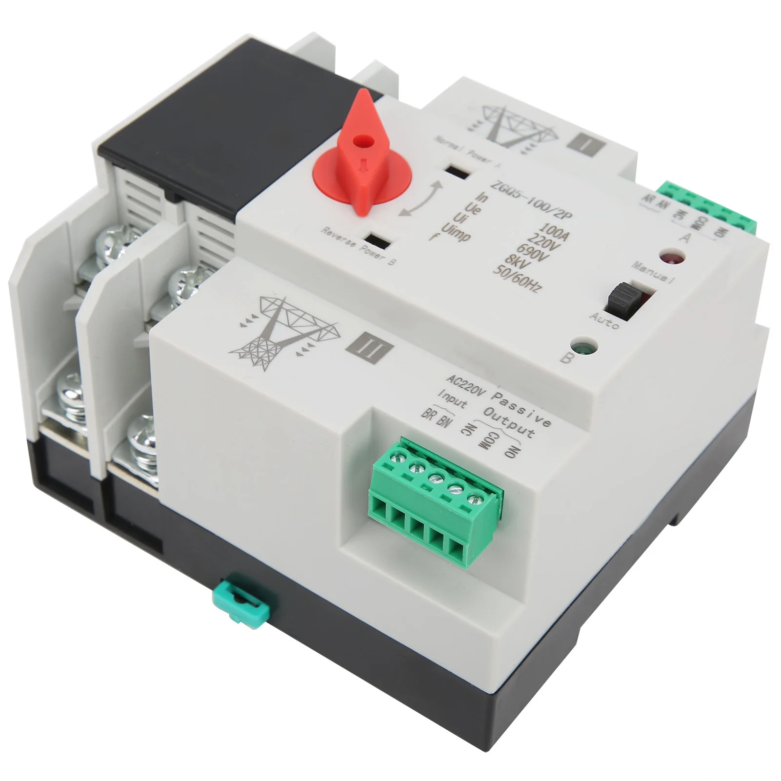 Характеристика: Спецификация: Тип изделия: автоматический переключатель двойного питания Модель: ZGQ5-100/2P 2. При отладке трехполюсного переключателя общие и запасные нейтральные провода должны быть подключены к нейтральному терминалу (NN и RN) соответственно.