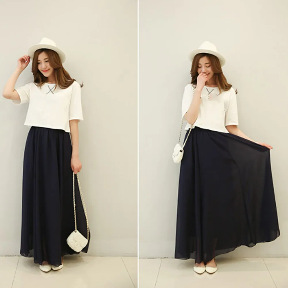 Модная женская сексуальная красивая эластичная однотонная шифоновая юбка с высокой талией, пляжная юбка YF045