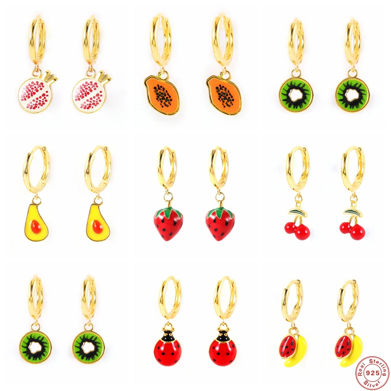 925 Серебро Цветная Эмаль Фрукты Кулон Висячие Серьги Летняя Коллекция Клубника Авокадо Вишня Серьги Шарм