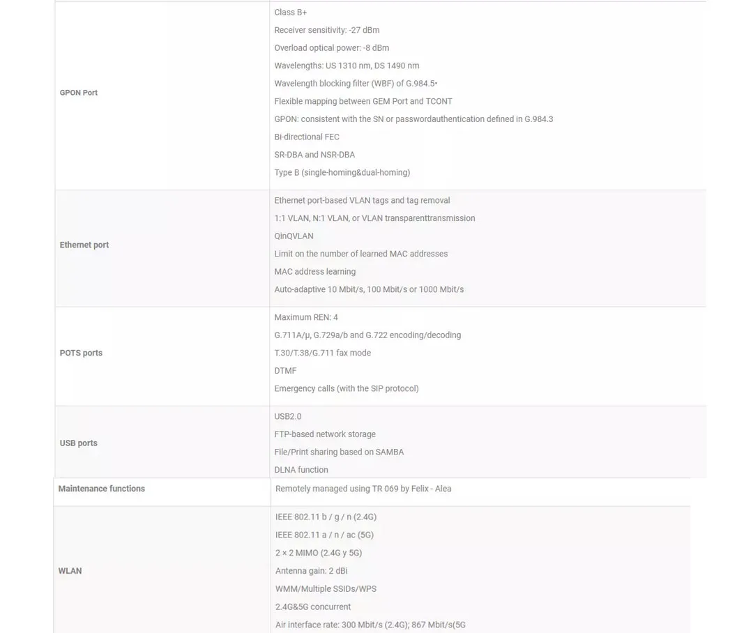 Поддержка 4GE + 1POTS + 1USB + 2Wi-Fi (интерфейс Ethernet 4 GE, голосовой интерфейс POTS, интерфейс USB, интерфейс Wi-Fi 1 2,4G и интерфейс Wi-Fi 1 5G), благодаря высокой производительности способности передавать эффективную защиту голоса, данных и видео hd делового опыта, Предоставление клиентам идеальных решений для оптического доступа и возможностей для будущей бизнес-поддержки.