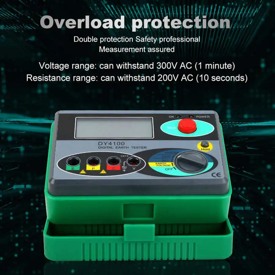 1. Диапазон измерения сопротивления заземления: 0-2000 Ом. 0/20/200/2000 Ом ±(2% + 3)