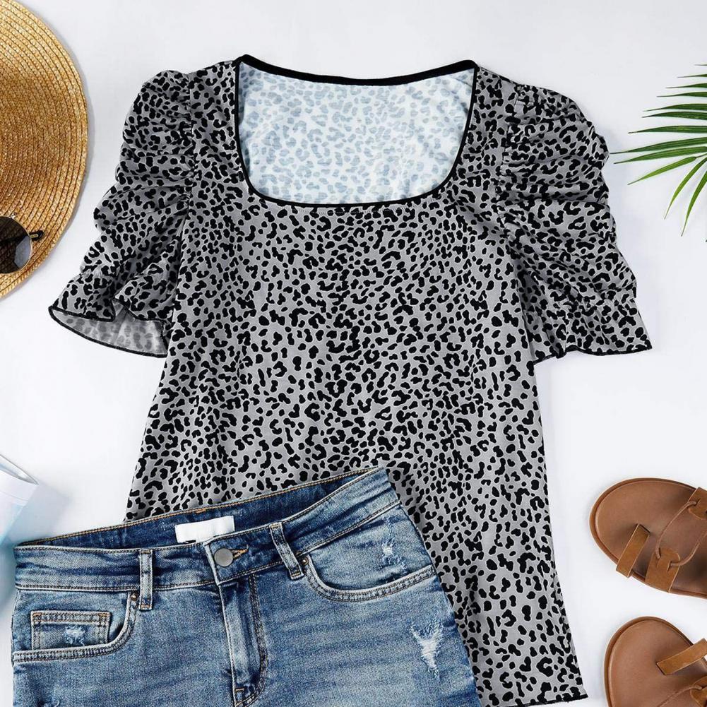 Особенности: оборки, короткие рукава, Леопардовый принт