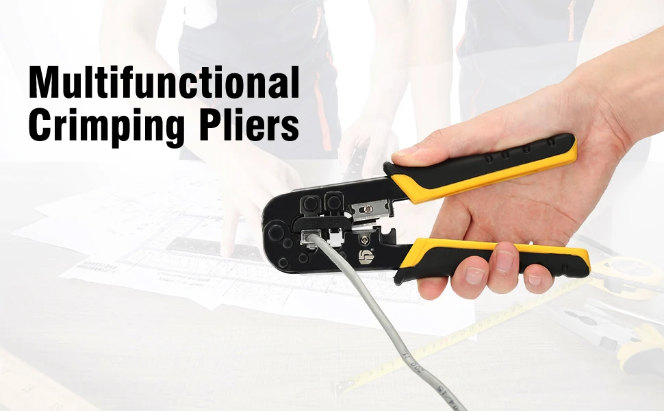 1.【 многоцелевой 】профессиональный инструмент для установки кабеля для зажима кабеля, прессования, зачистки и резки. Обжимной инструмент предлагает надежное, простое в использовании и доступное решение для удовлетворения потребностей срочной резки. Долговечно изготовлено из стали и выполнено из черного оксида для высокой производительности, обеспечивает быструю, надежную модульную обжимную установку соединителя для передачи голоса и данных.