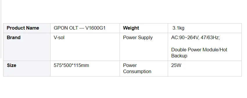 Продукция серии V1600G GPON OLT-это 19-дюймовая стойка высотой 1U. Особенности OLT небольшие, удобные, гибкие, простые в развертывании, высокая производительность. Подходит для использования в компактных помещениях. OLTs используется для «тройное воспроизведение», VPN, IP-камера, корпоративные ЛВС и ИКТ-приложения.