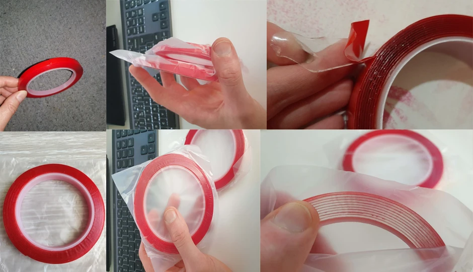 【Высокая прозрачность 】 акриловый клейкий материал Двусторонняя Монтажная лента, кристально чистая, не влияет на внешний вид, особенно подходит для украшения стекла, дизайн сдержанной Красной подложки помогает вам легко очистить, удобно для нанесения ленты