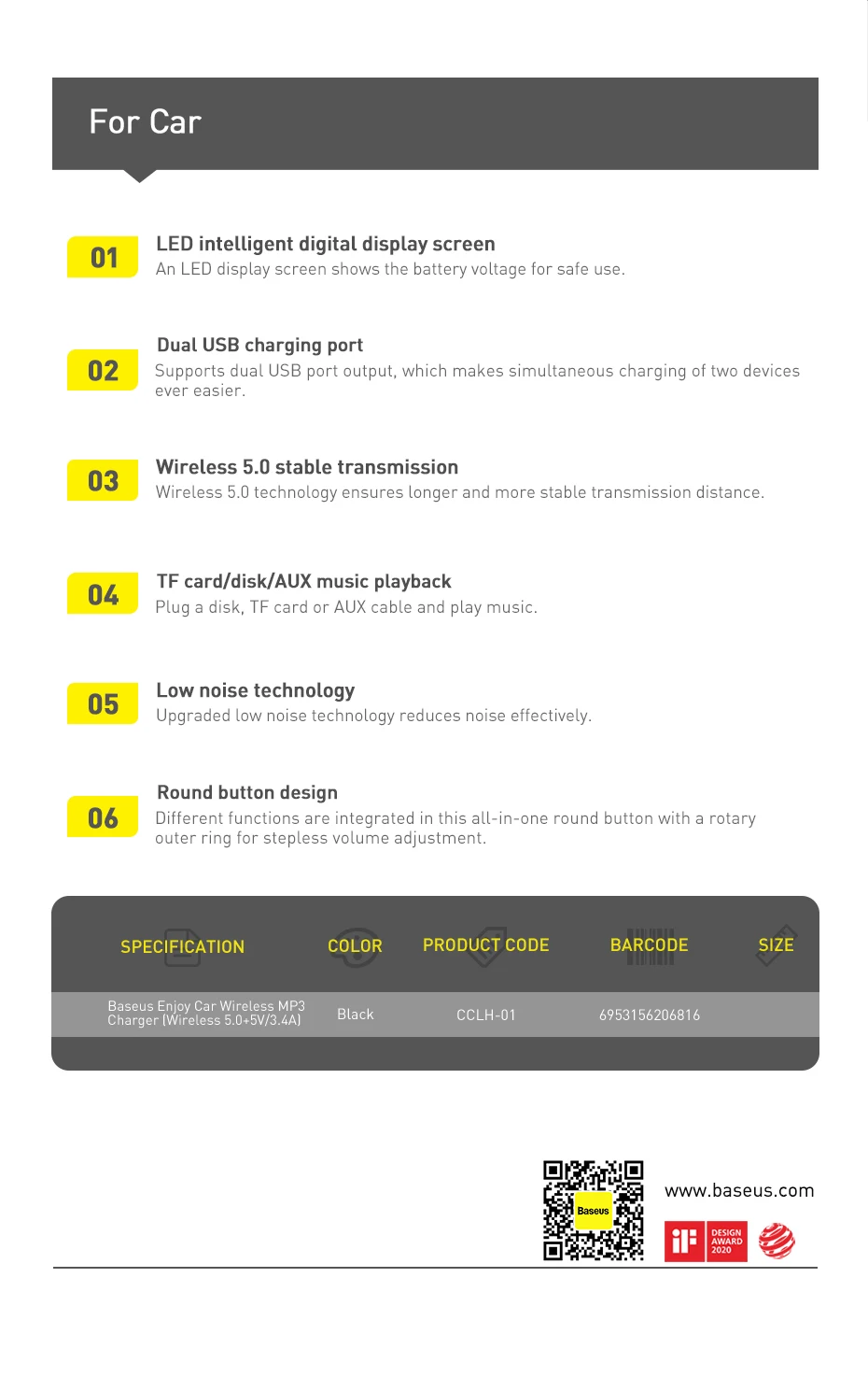 Беспроводной чип 5,0 и Высокопроизводительный Модуль декодирования звука обеспечивают качество без потерь HD. Поддержка формата WMA/APE/MP3/FL AC/WAV без потерь.