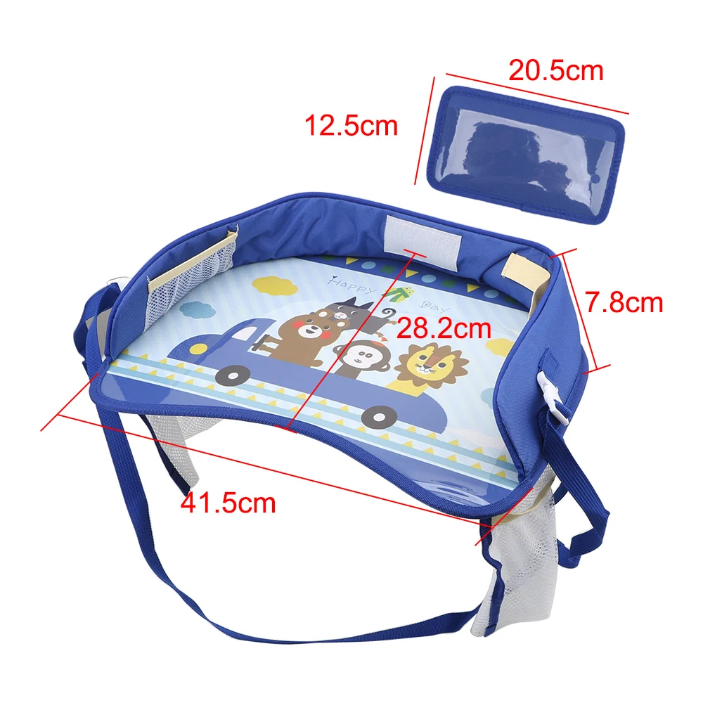 Multiple pockets of travel trays or baby travel accessories store kids essentials well within reach, large surface with raised edges prevents crayons, pencils from rolling on the floor, see-through PVC pocket holds a smartphone.