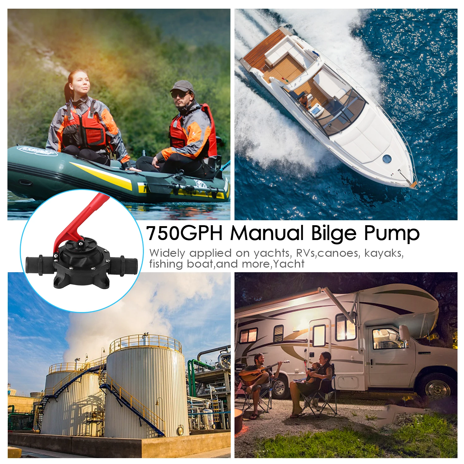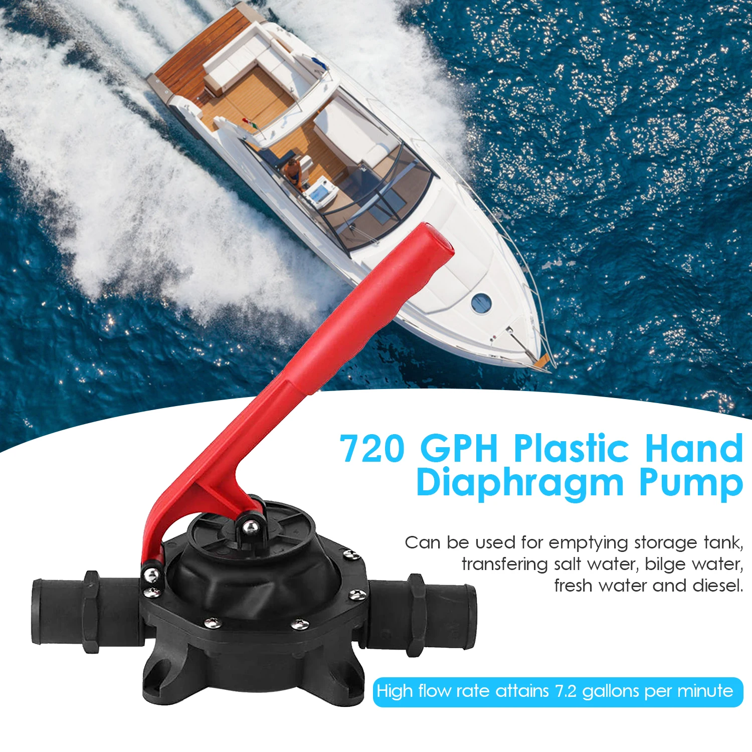 Высокая емкость 720 GPH ручной Трюмный насос имеет Максимальный подъем 10 футов, Максимальная головка 13 футов, компактный размер, 1-1/4 дюйма соединение шланга и 1-1/2 дюйма адаптеры. Он используется для откачки соленой воды, пресной воды, дизельного топлива и многого другого.