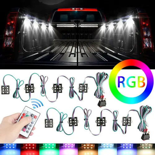 Этот многоцветный светодиодный комплект может быть instal светодиодный в любом месте вы можете себе представить. Работает от 12 В постоянного тока и притягивает мало энергии. Используя самые яркие компактные Чипы SMD, этот продукт будет хорошо освещаться в большинстве областей. Включает беспроводной пульт дистанционного управления для включения/выключения и изменения цвета, а также перекидной переключатель на жесткий провод, если вы хотите выключить питание вкл/выкл изнутри грузовика.