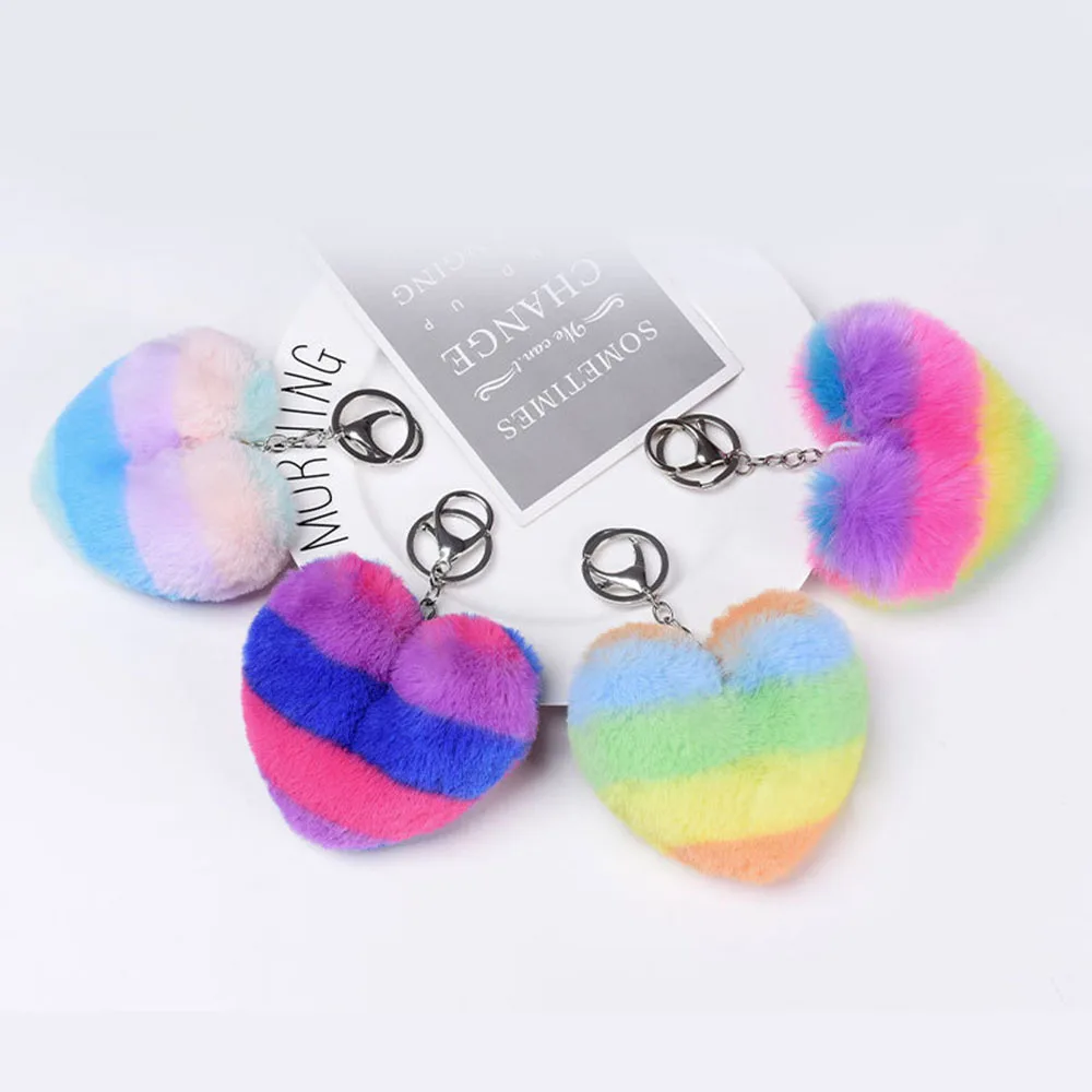 Новинка 2021 года, многоцветная подвеска в форме сердца, цветной плюшевый брелок в форме сердца персика, радужная сумка в форме сердца, автомобильный кулон для подарка