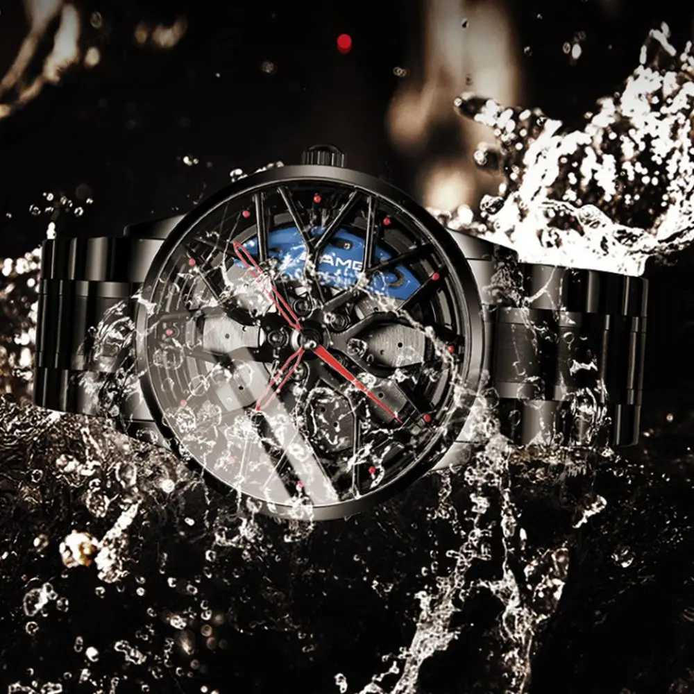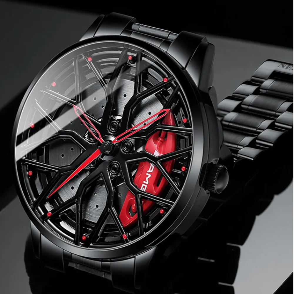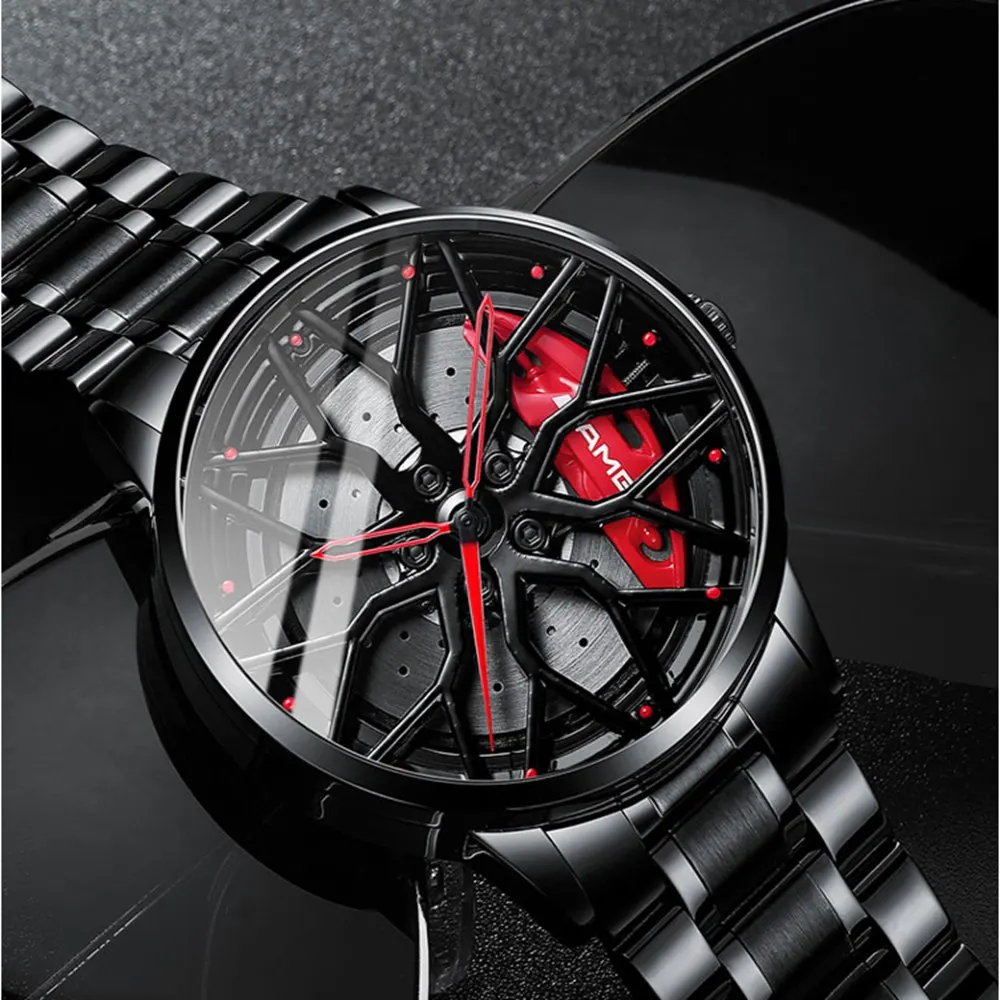Крутые спортивные 3D колеса Ступицы часы Креативный Уникальный полый Скелет кварцевые автомобильные колеса часы мужские Роскошные водонепроницаемые Relogio Masculino