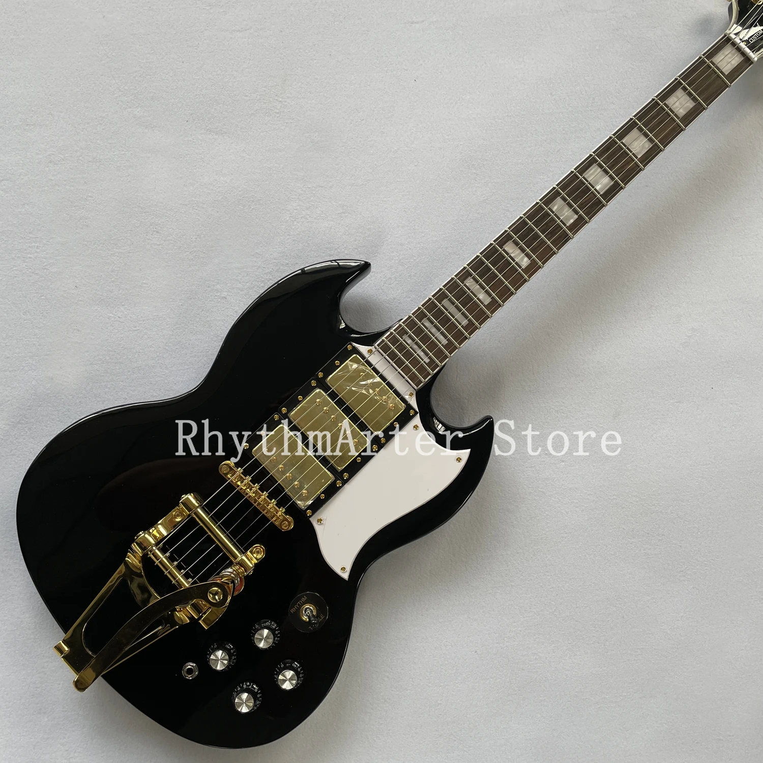 Индивидуальные SG гитары, яркий черный корпус, палисандр гриф, золотой цвет оборудования, три пикап, tremolo системы, бесплатная доставка