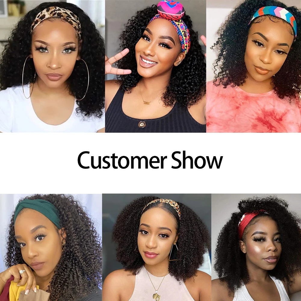 Парик с головной повязкой синтетические кудрявые 16 дюймов натуральные черные с шарфом термостойкие парики для женщин афро-американские