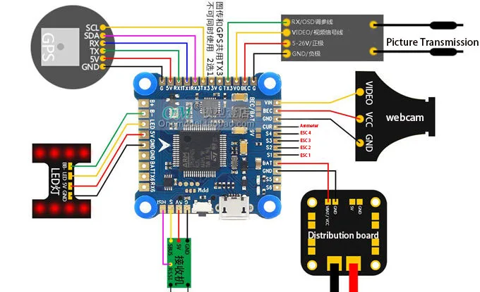 F4V3 PRO имеет функцию распределительной платы, которая может быть непосредственно подключена к батарее и ESC. Рекомендуется для фиксации крыльев и более удобного использования.