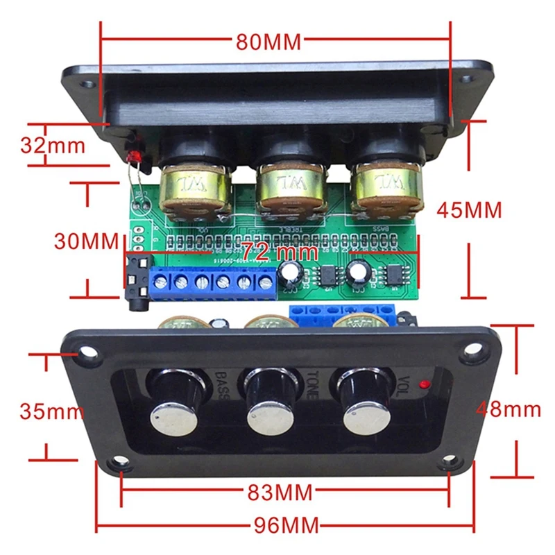 Примечание: поскольку эта плата имеет функцию настройки басов, максимальная мощность составляет 2x20 Вт, когда полный объем включен, и громкость может быть уменьшена во время настройки! Только нужно быть громче без искажений
