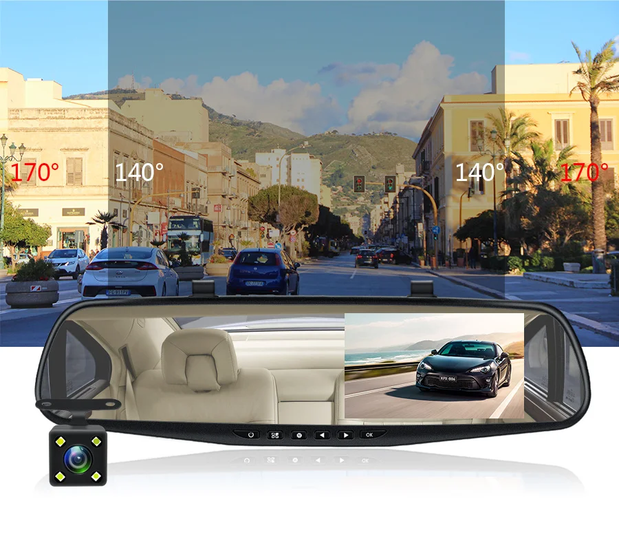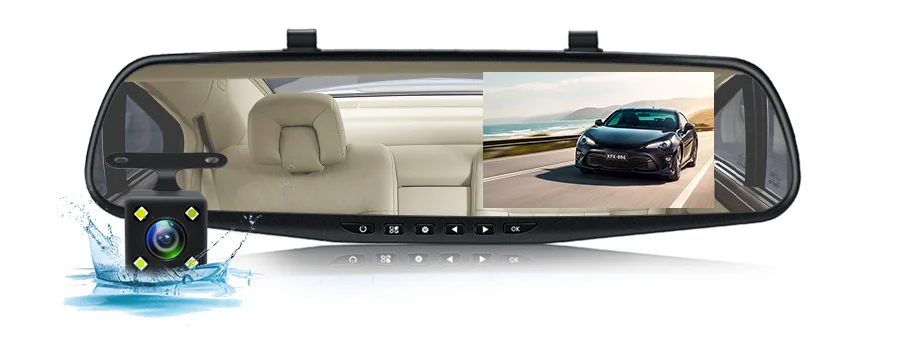 AССEO Full HD 1080P Автомобильный видеорегистратор Камера авто 4,3 дюймов зеркало заднего вида цифровой видеорегистратор двойной объектив регистратор видеокамера