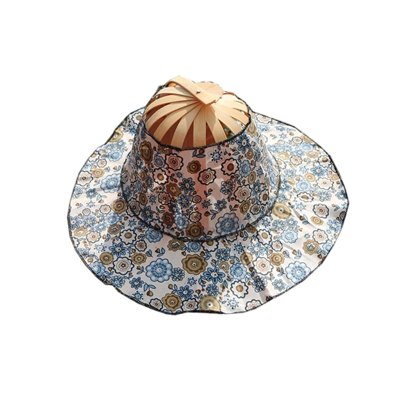 Веер из бамбуковой плетеной шляпы: красочный стиль, дешево и красиво, это шляпа после ее полного разворачивания и веер после ее разворачивания. <Br/>