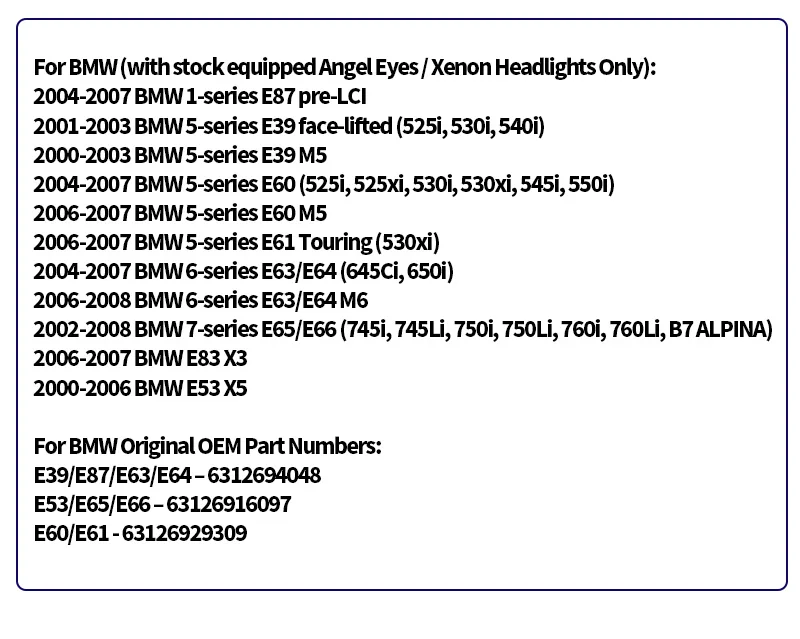 Для BMW (в наличии только ангельские глазки/Ксеноновые фары):