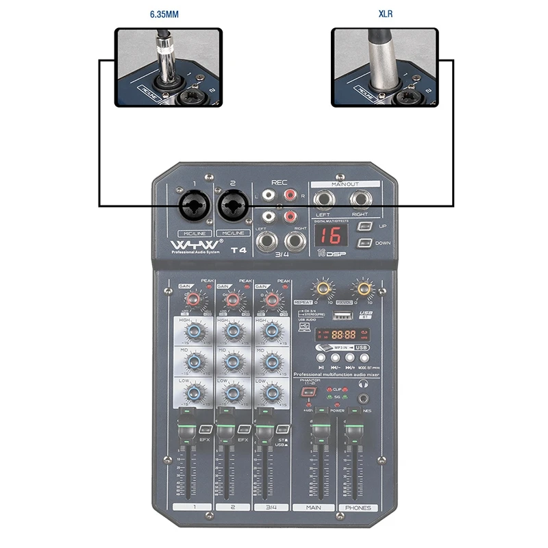Wenyanwen 4-канальный мини-миксер, USB, Bluetooth, цифровой MP3 компьютер Вход, 48В Мощность