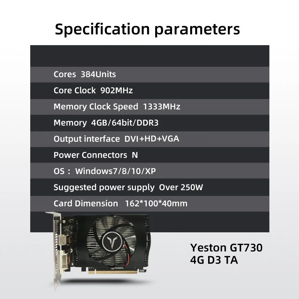 Yeston GT730-4G D3 TA видеокарта с частотой 902/1333 МГц 4G/DDR3/64 бит памяти HD + DVI + VGA выходные порты для офисных игр