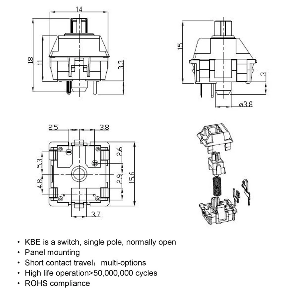 100 шт. механическая клавиатура черный, синий, коричневый, красный клавишный переключатель для CIY Sockets SMD 3pin тонкие булавки совместимы с MX переключателем