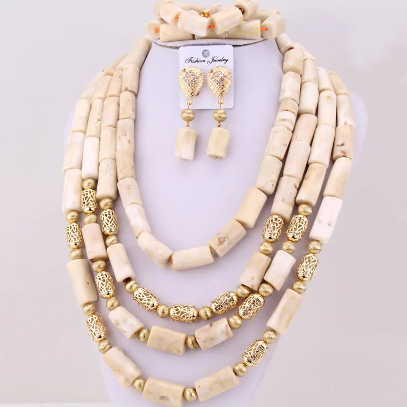 Набор украшений Dudo Store, Африканский ювелирный набор из белых коралловых бусин, свадебный набор из 3 рядов, ожерелье, браслет, серьги, ювелирный набор, 2019USD 76,50/комплект