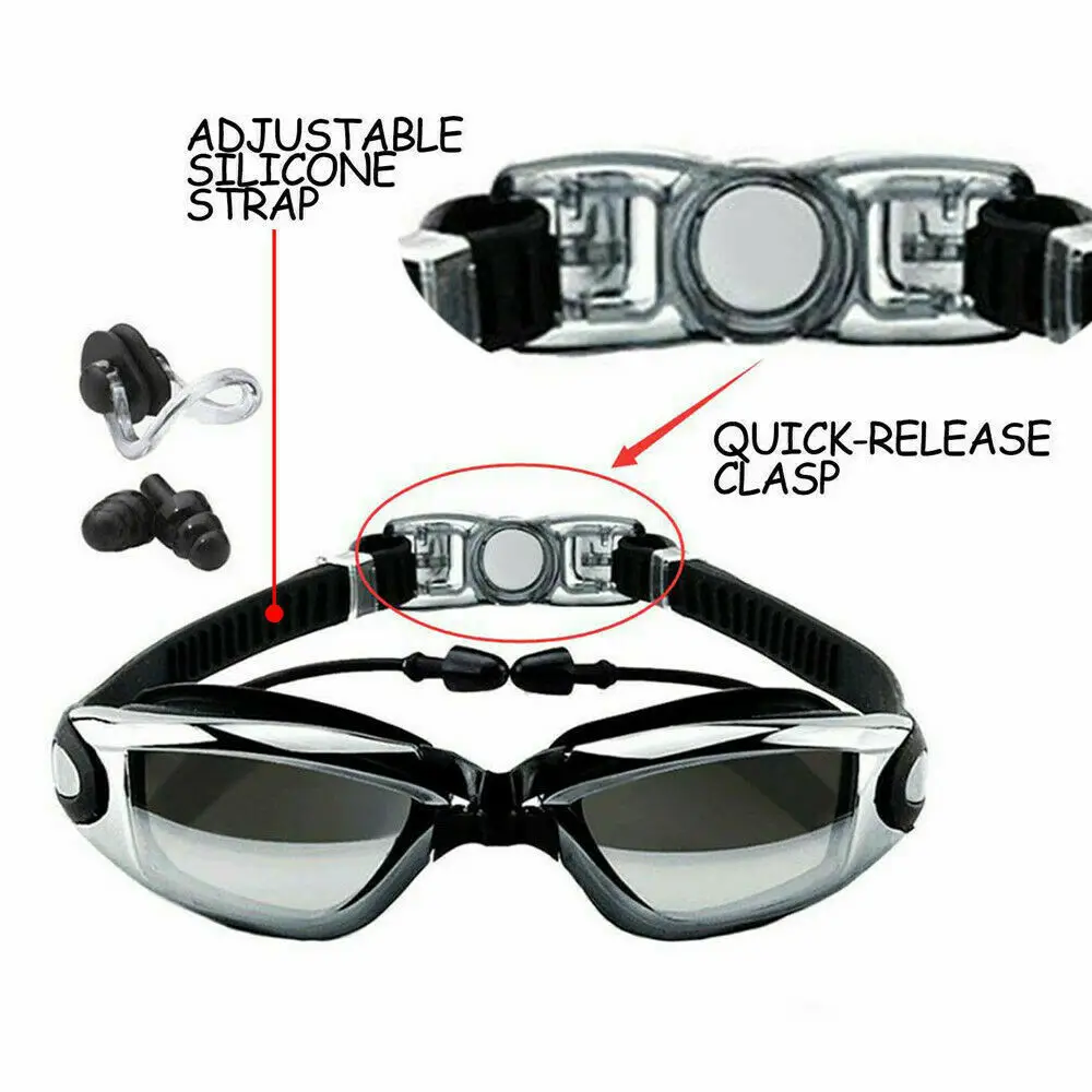 Посылка включает в себя: 1 x плавательные очки с заглушкой для ушей + зажим для носа + 1 пара затычек для ушей + коробка